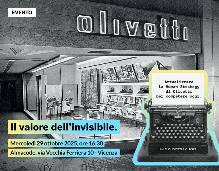 Il 29 ottobre, nel giorno dell’anniversario della fondazione della Ing. C. Olivetti & C., abbiamo deciso di omaggiare questa ricorrenza organizzando un incontro dal titolo “Il valore dell’invisibile: attualizzare la Human-Strategy di Olivetti per competere oggi”, con l’obiettivo ambizioso di rispondere ad una domanda tanto semplice quanto cruciale: cosa può ancora insegnare il modello Olivettiano alle imprese di oggi? La risposta, emersa con forza durante il pomeriggio di confronto, è la consapevolezza che Olivetti non appartiene solo alla storia dell’industria italiana, ma rappresenta un modello culturale ancora capace di orientare le decisioni strategiche delle aziende contemporanee.